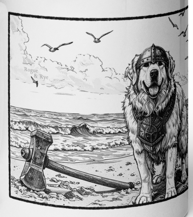Vigilance. Valor. Very Serious Barking. Meet The Herald—Rogue & Rye’s mighty Great Pyrenees Fighter and steadfast guardian of the realm (also known as the back yard). Inspired by a real-life champion of snacks and fierce protector against squirrels, delivery trucks, and all manner of suspicious neighborhood activity, The Herald is the first to raise the alarm and the last to leave the post. This collection honors her unyielding spirit—with gear made for those who keep watch, stand tall, and occasionally demand treats. Whether you’re layering up for chilly patrols or lounging between quests, these pieces offer comfort with a cause: to guard what matters, look good doing it, and never let a squirrel go unchallenged.